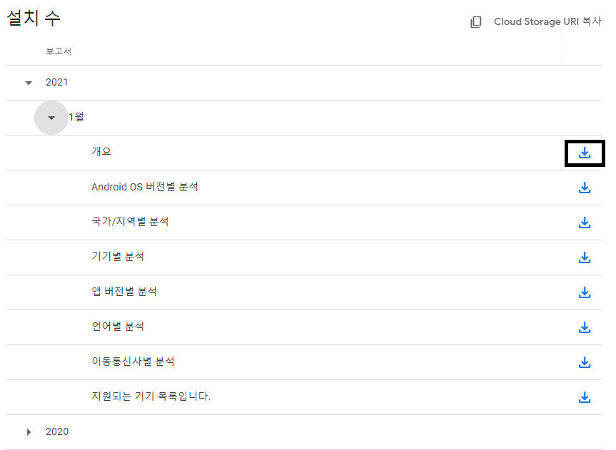 구글에서 더 이상 '누적 앱 설치 수'를 제공해주지 않기 때문에 수작업이 필요해졌다ㅜ.ㅜ