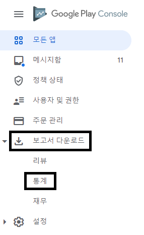 2. 왼쪽 메뉴 중 [보고서 다운로드] - [통계] 클릭