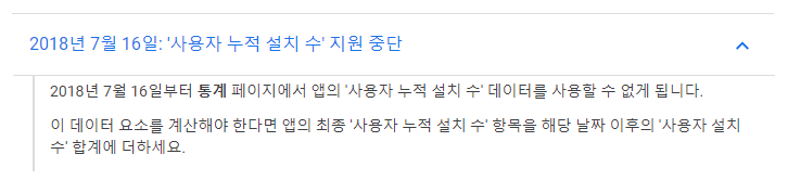 내용을 보면 2018년 7월 16일 이후부터 '사용자 누적 설치 수' 데이터는 제공하지 않겠다는 것이다.