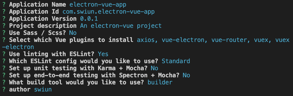 electron-vue-app이라고 되어있는 부분은 원하는 프로젝트 명으로 변경하여 사용하시면 됩니다.
