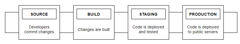 초기 단계에서 발견된 문제들은 코드가 파이프라인을 통해 진행되는 것을 막는다. 테스트 결과는 즉시 팀으로 보내지며 소프트웨어가 단계를 통과하지 못하면 추가 빌드 및 릴리스가 모두 중단됩니다. 이 단계들은 제안이다. 비즈니스 요구에 따라 단계를 조정할 수 있다. 조직은 시작 단계에서 모든 단계에서 다중 환경, 많은 테스트 단계 및 자동화를 통해 완전히 성숙한 파이프라인을 구축하려고 시도하지 말고 작은 단계부터 시작해야 한다. 성숙도가 높은 CI/CD 환경을 보유한 조직도 파이프라인을 지속적으로 개선해야 한다는 점을 명심하십시오.