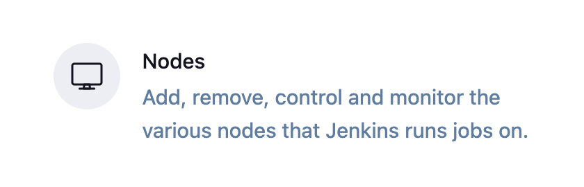 Jenkins 관리 > System Configuration > Nodes 메뉴로 이동 하여 원하는 노드 클릭